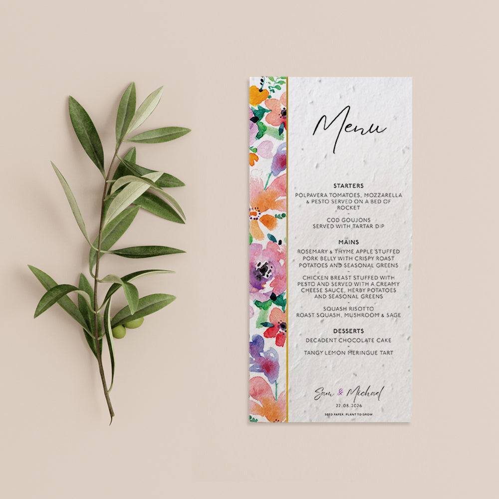 These Menus should be perfectly suited to you, choose from our wide range of eco-friendly papers. To learn more about each paper range, please read here.