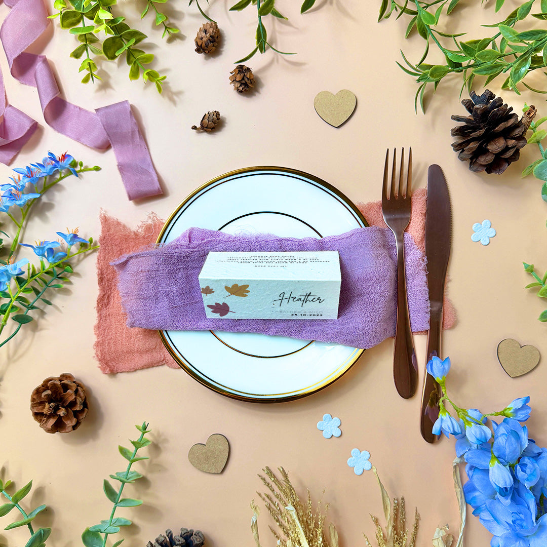 Plantable wedding place cards: eco-friendly and charming keepsakes that guests can sow to bloom beautiful memories long after the celebration.