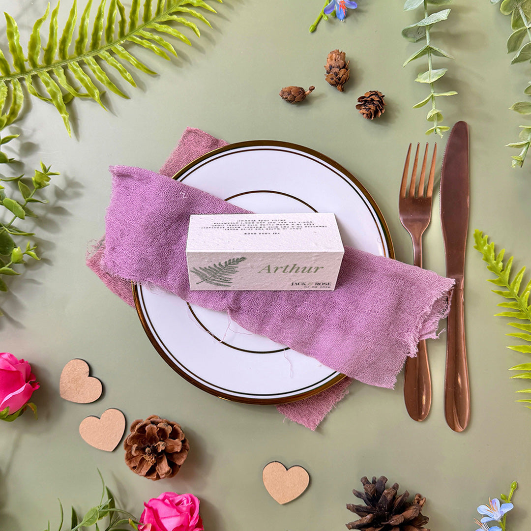 Plantable wedding place cards: eco-friendly and charming keepsakes that guests can sow to bloom beautiful memories long after the celebration.