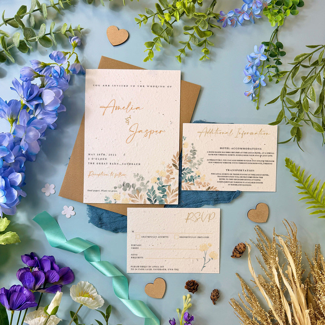 These Save the Dates should be perfectly suited to you, choose from our wide range of eco-friendly papers. To learn more about each paper range, please read here.