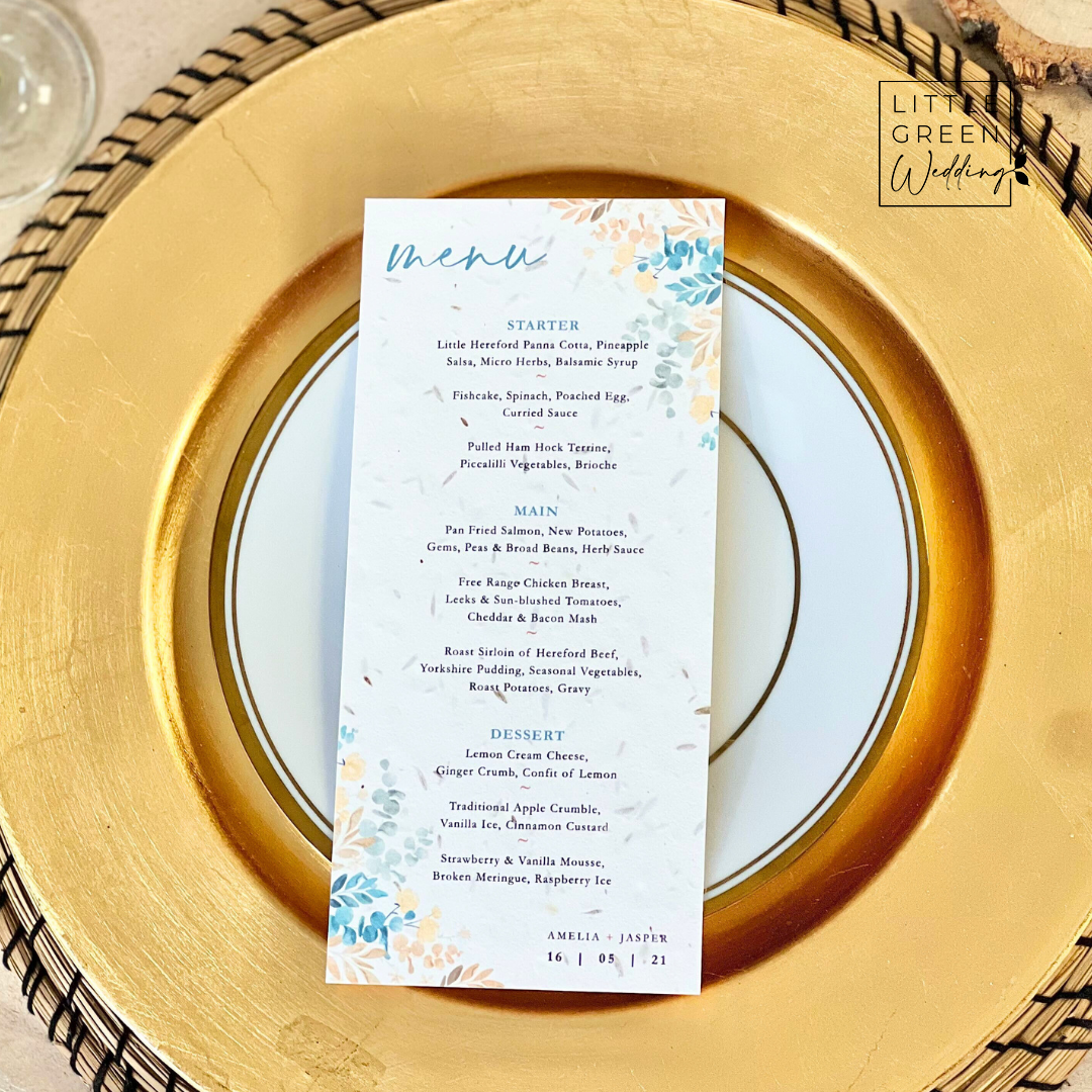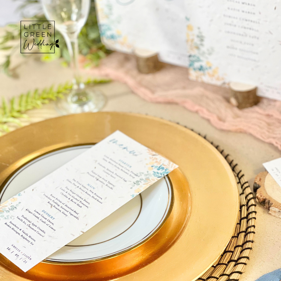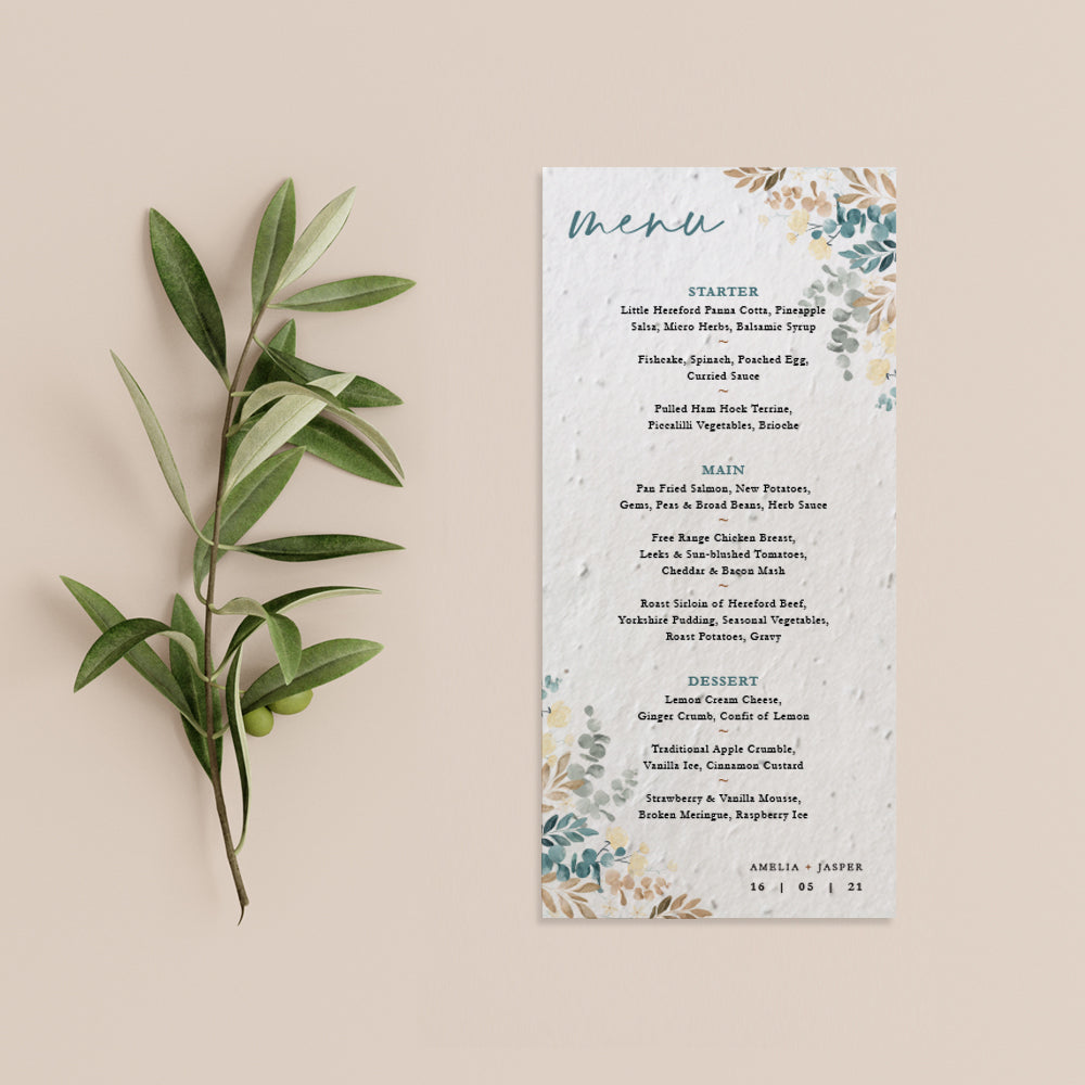 These Menus should be perfectly suited to you, choose from our wide range of eco-friendly papers. To learn more about each paper range, please read here.