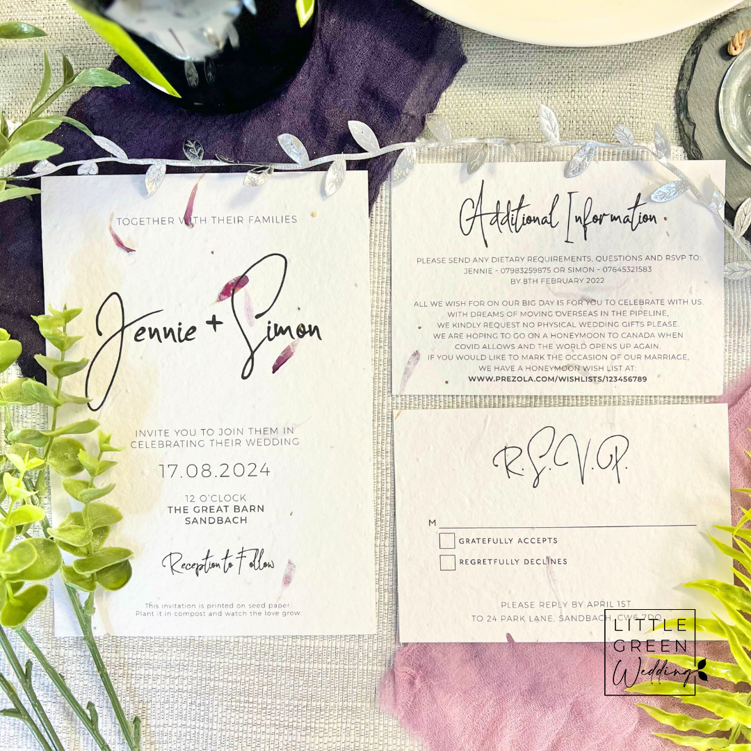 These Save the Dates should be perfectly suited to you, choose from our wide range of eco-friendly papers. To learn more about each paper range, please read here.