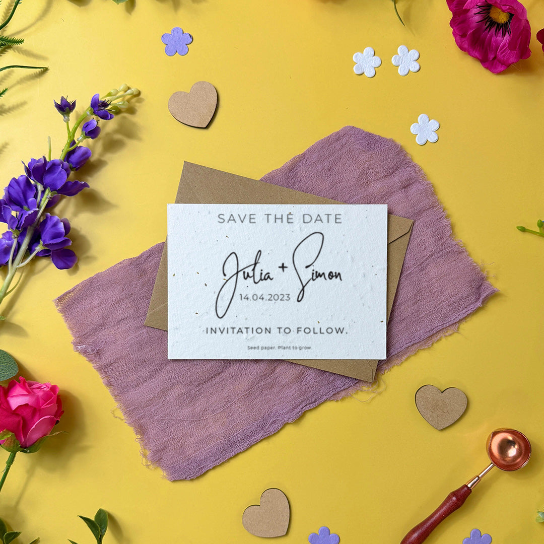 These Save the Dates should be perfectly suited to you, choose from our wide range of eco-friendly papers. To learn more about each paper range, please read here.
