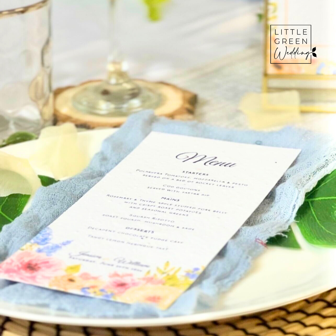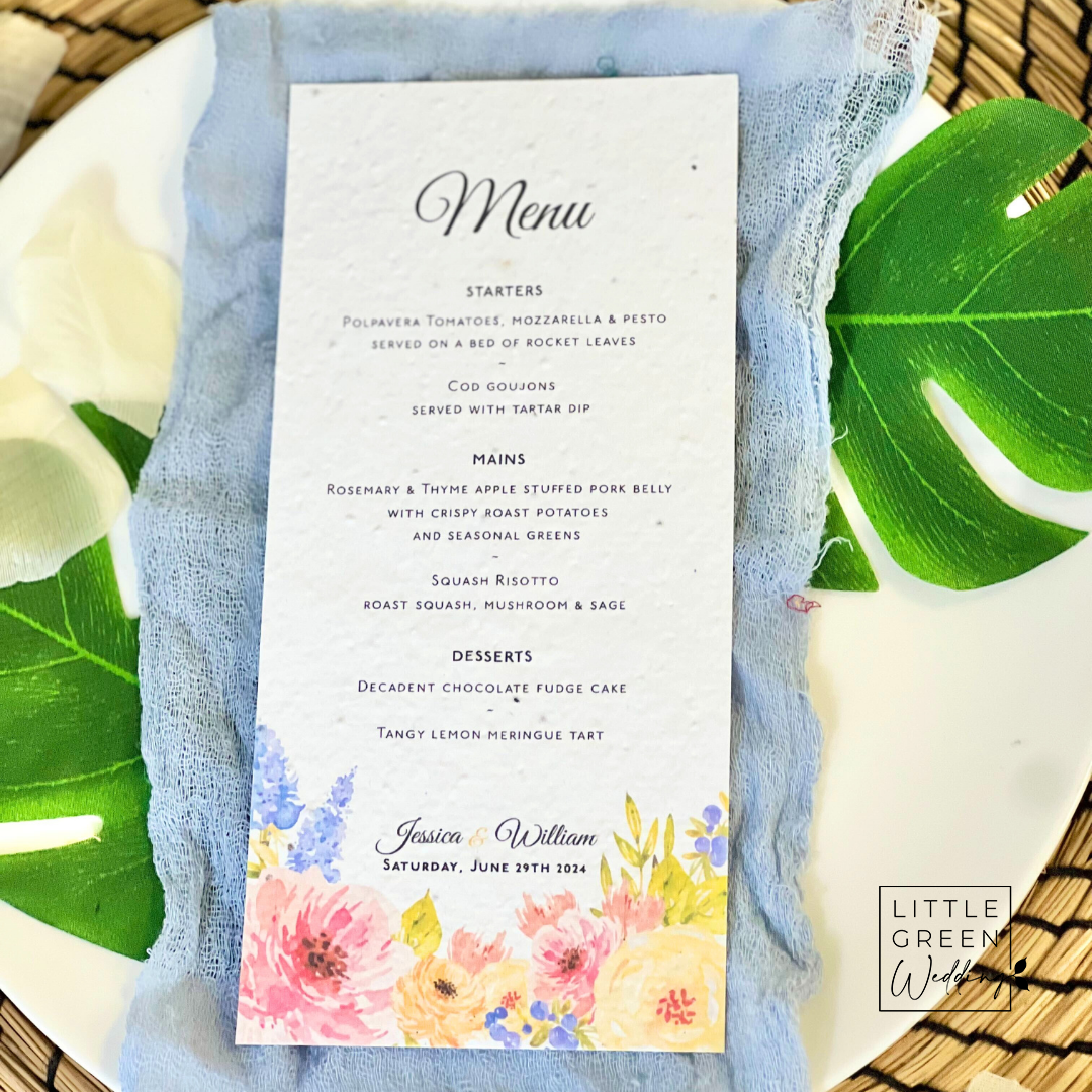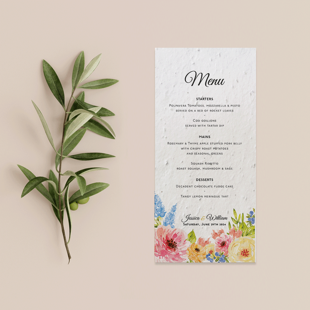 These Menus should be perfectly suited to you, choose from our wide range of eco-friendly papers. To learn more about each paper range, please read here.